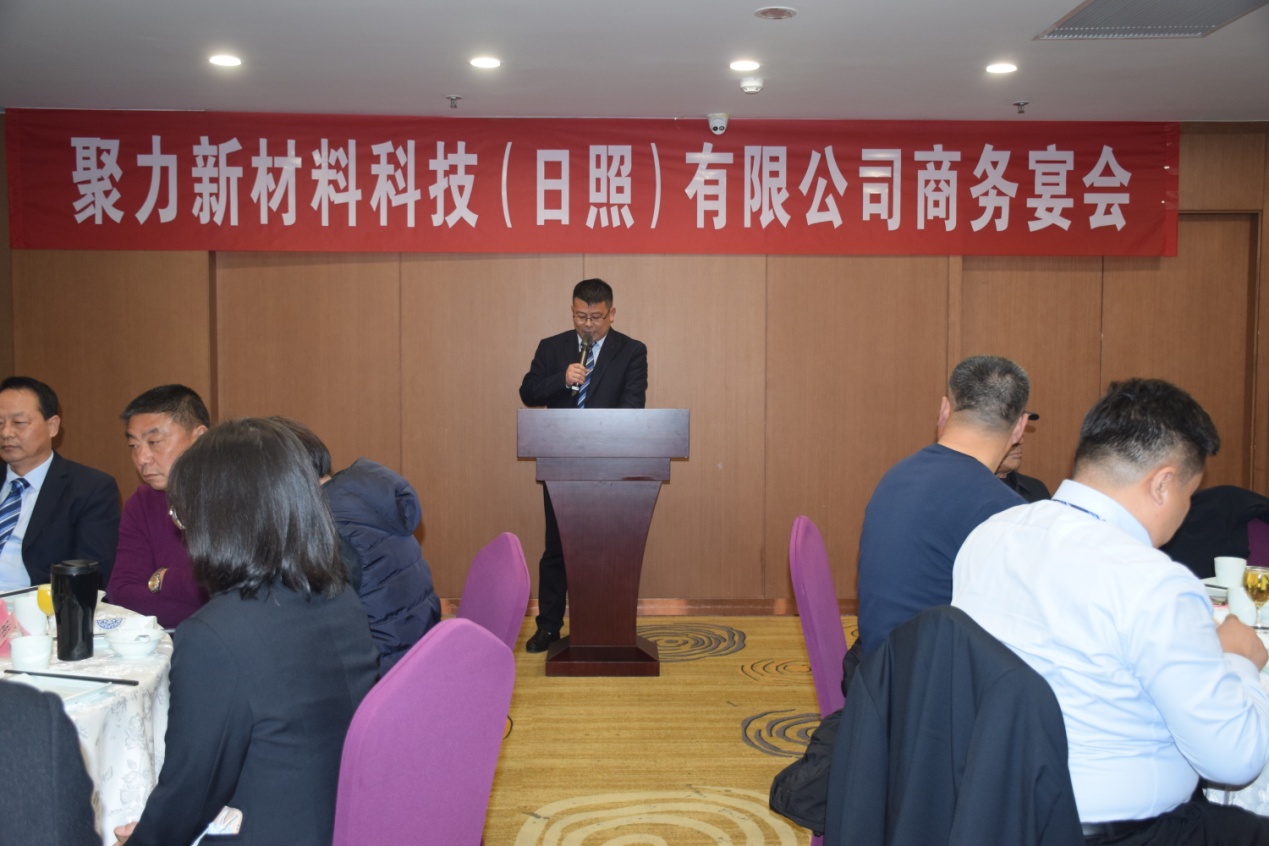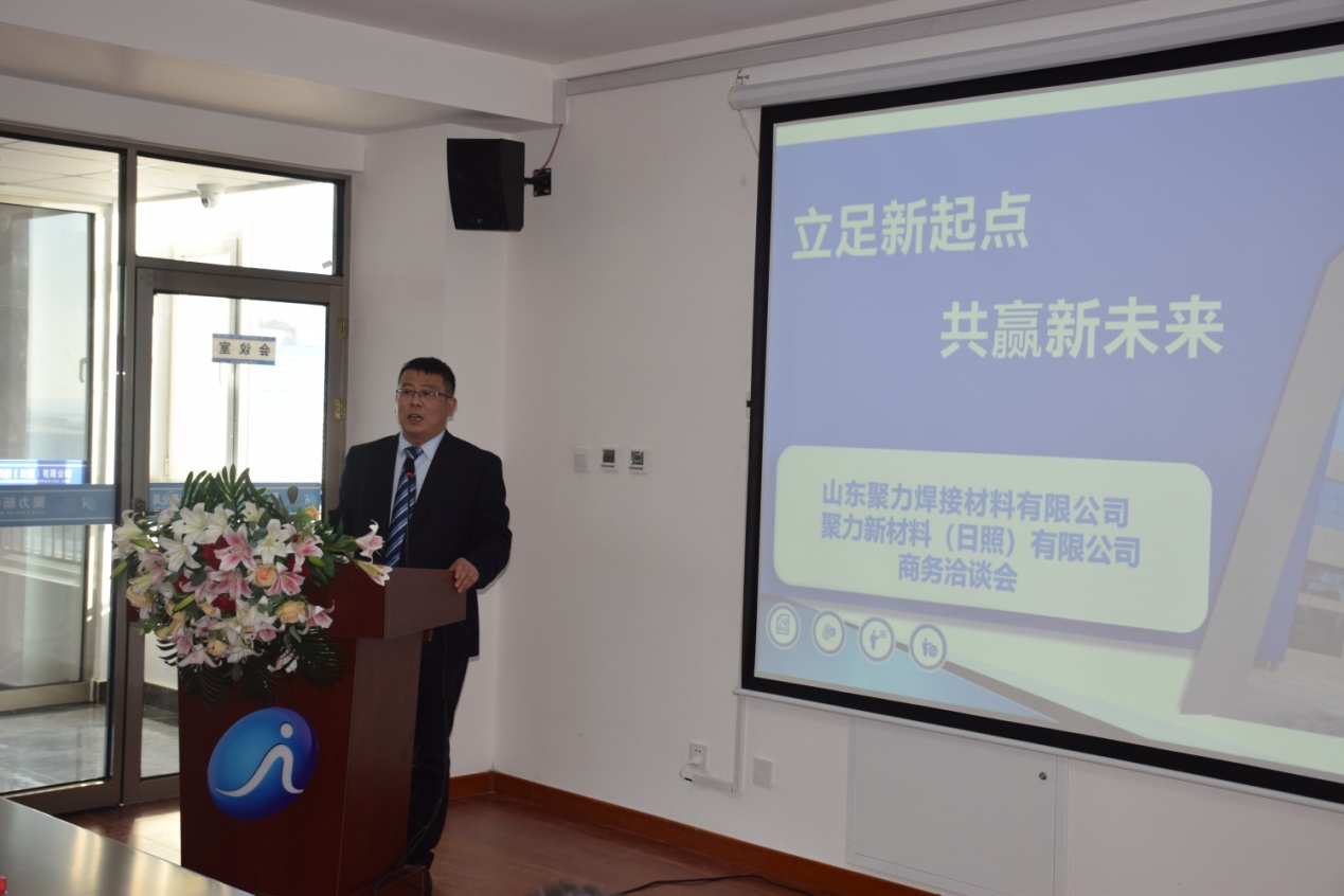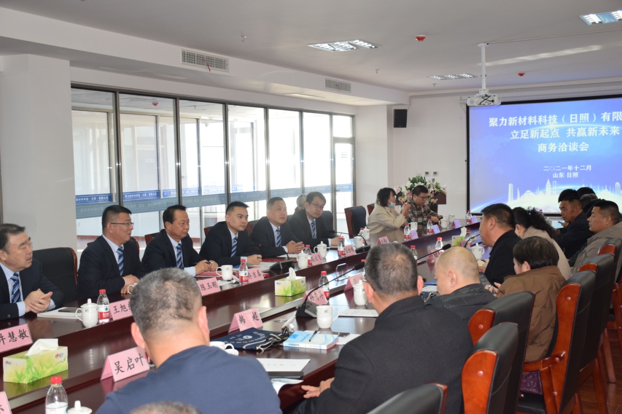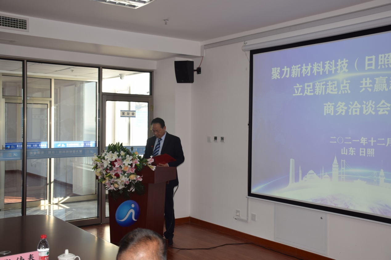 2021年12月13日上午9點(diǎn),聚力新材料科技(日照)有限公司“立足新起點(diǎn)、共贏新未來”商務(wù)洽談會(huì)在聚力日照公司新落成投入使用的辦公大樓準(zhǔn)時(shí)召開,會(huì)議由公司副總經(jīng)理高云飛主持,公司副董事長(zhǎng)、日照公司總經(jīng)理喬吉春致歡迎詞。