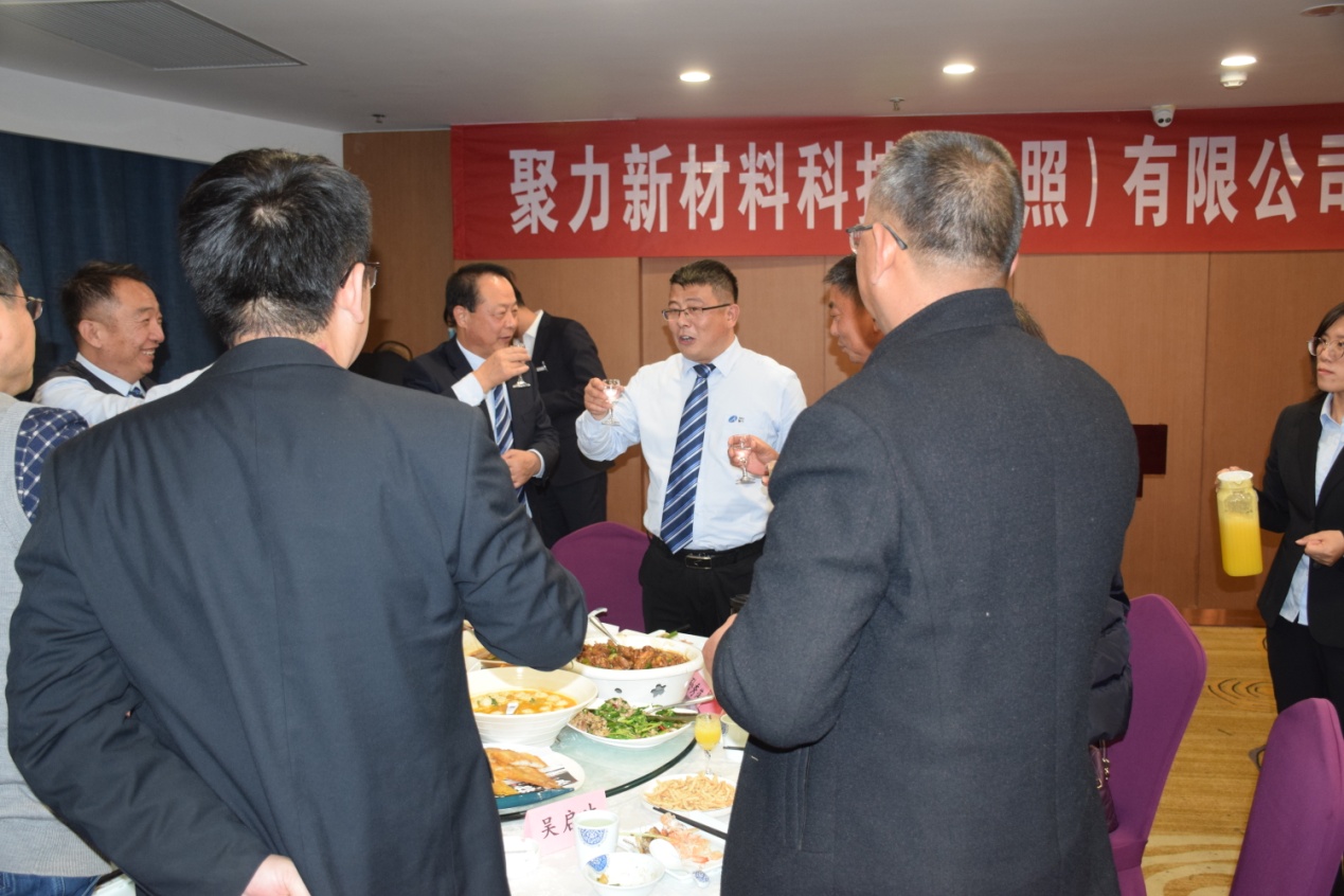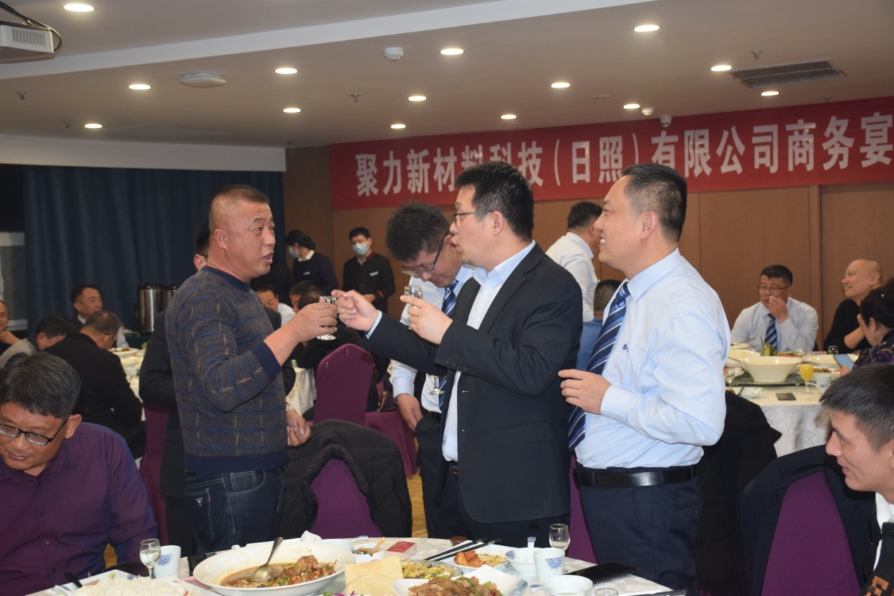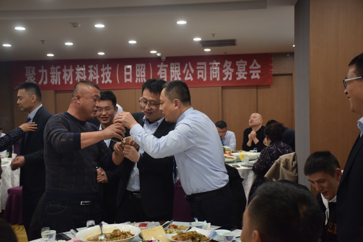 古人云“有朋自遠(yuǎn)方來,不亦樂乎”,12日晚,公司在日照君臨天下大酒店舉行了隆重的歡迎晚宴。宴會(huì)上來自江蘇、山東兩地的客商與公司高管及業(yè)務(wù)團(tuán)隊(duì)推杯換盞,觥籌交錯(cuò),公司常務(wù)副總陳玉剛代表公司致歡迎詞,對(duì)百忙之中撥冗蒞臨聚力新材料科技(日照)有限公司商務(wù)宴會(huì)的客商表示親切的問候和熱烈的歡迎! 并對(duì)所有關(guān)心、支持山東聚力集團(tuán)發(fā)展的各界朋友致以崇高的敬意!